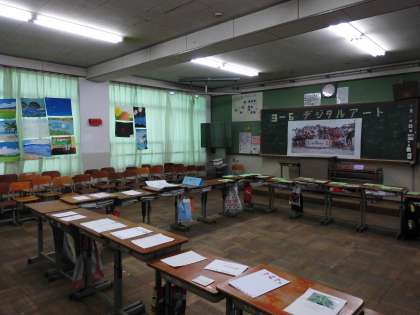 デジタル壁画は3年1,6組と1,7組の作品です。