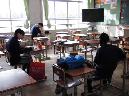 本日午前9時から11時30分まで,3年生が2つの教室にわかれて,土曜学習をおこないました。11名の参加でした。それぞれ自分で用意した問題集や,高校入試の過去問を持ってきて,落ち着いて取り組んでいました。2回目は来週11月16日(土)に実施する予定です。