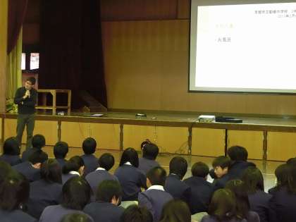 2年生では「異文化をもつ人々との共生を考える」をテーマに、タイ人のポップさんを講師にお招きし、講演を行っていただきました。
