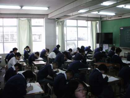 定期考査が始まっています。1年生にとっては初めての定期考査です。緊張感が伝わってきました。2年生・3年生もしっかりと取り組めていました。定期考査が終わったら,これまで学習してきたことが定着しているか確認して,できなかったところは見直して復習していきましょう。