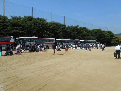 7:50に学校集合。点呼・結団式など予定より早く順調に進みました。さすが3年生。