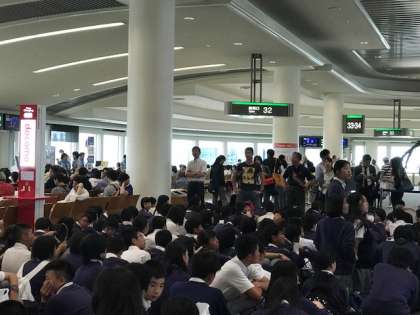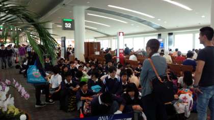 国際通りの行程を終え、那覇空港で搭乗待ちです。