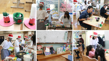 教室の飾りもクリスマスムード…