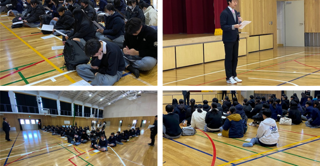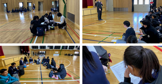 それに向け、5時間目に受検する人が体育館に集合し集会が行われました。