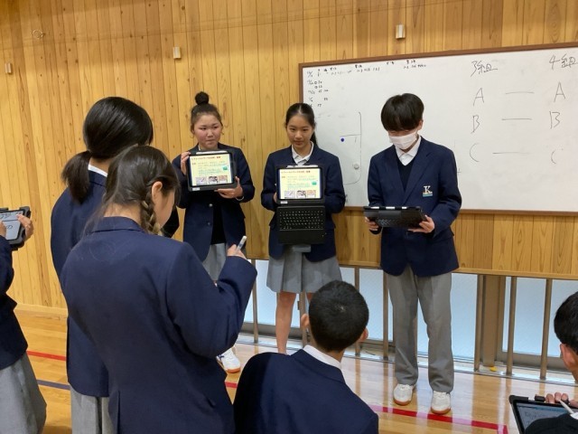 国語・数学・社会・美術・英語・その他のそれぞれのゼミにわかれて、地域の課題解決の為に『教科の学習』を活かした探求活動を行い、本日校内発表を行いました。