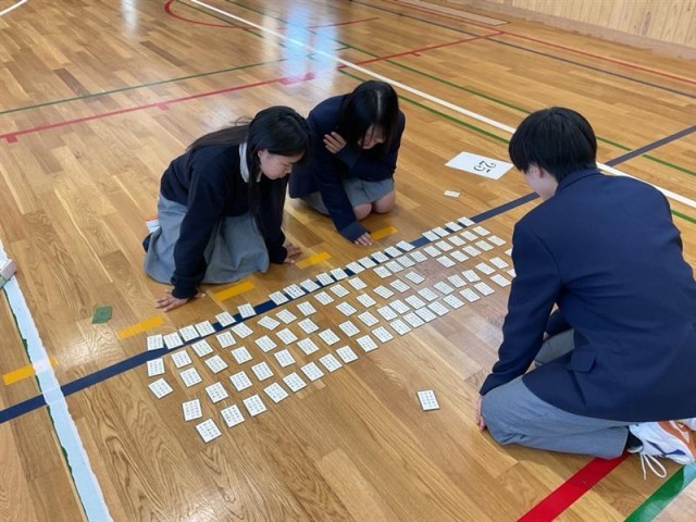 今日行った『百人一首』は、平安時代から続く「貝覆い」や「貝合わせ」をルーツとし、江戸時代中期に庶民の間で「お正月の遊び」として定着した伝統的な遊びから始まったようです。