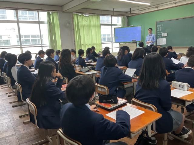 今日から2・3年生は教科の授業が始まりました。初めて中学校の教壇に立ったK先生、緊張の面持ちでしたね。