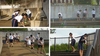 6月9日(金)にプール清掃を行いました。今回は,外回りや更衣室などの清掃を行いました。作業をしてくれた皆さん ありがとうございました。