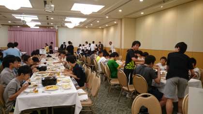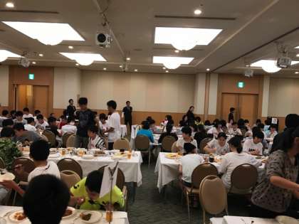 班別研修が終了し,全員元気に今日の宿泊場所の第一ホテル両国に元気に到着しました。楽しく夕食をとっています。