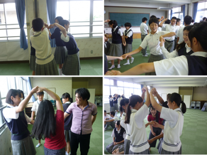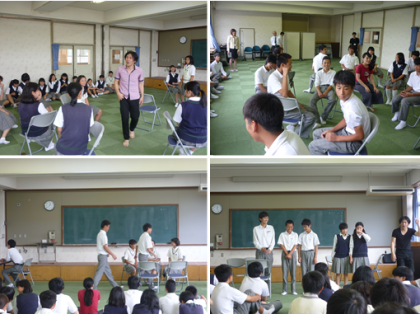7月10日(月)に3年生が,俳優さんによる実演を交えた,「演出」の役割について学びました。言葉や身体を使ったグループワーク等で,コミュニケーションの取り方を学んだり,簡単な演劇を実際に演じたりしました。
