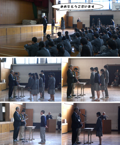 生徒集会の中で,伝達表彰を行いました。おめでとうございます。