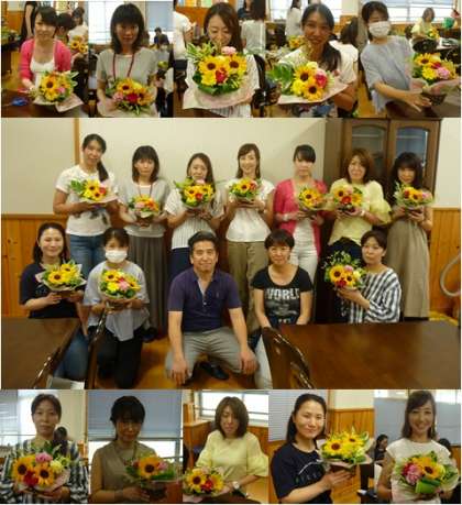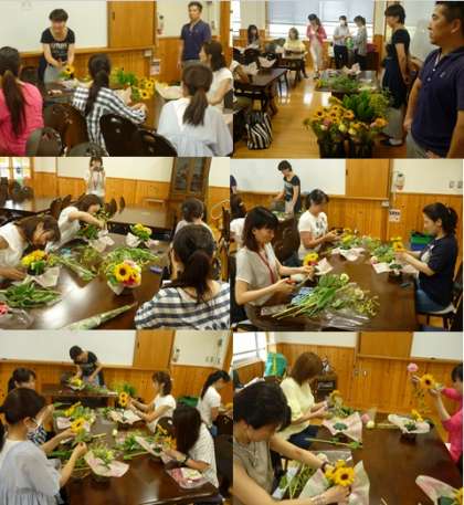 PTA文化委員会の主催でPTA文化教室(フラワーアレンジメント教室)を行いました。講師の先生にも丁寧にご指導いただき,ご参加いただいたみなさんが,それぞれに素敵な作品を作られました。