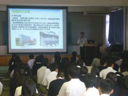 10月15日(月)3年生のポスター発表に向けて,山科区役所の方に講演に来ていただ来ました。山科について知り,山科区をどうやってより良くしていくのかについて考えてくれていました。