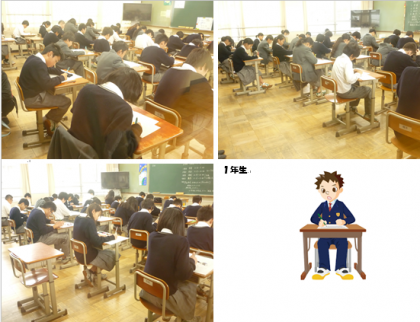 11月21日(水)〜22日(木)[3年生は20日から]2期期末テストが行われました。みんな真剣な表情で,集中してテストに取組んでいました。