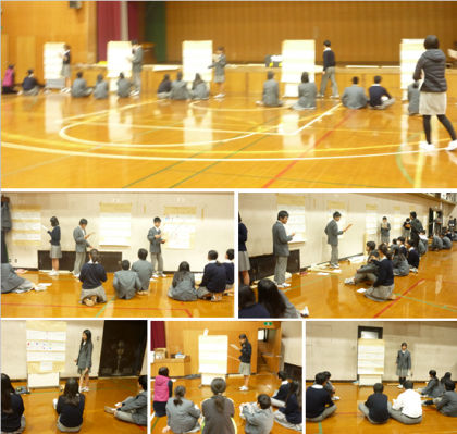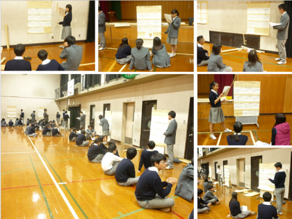 11月26日(月)3年生が,これからの山科をどう盛り上げていくか,「山科きずな事業」について考えたことを発表しました。山科区役所からもセッションにご参加いただきました。6限には1年生も参加しました。生徒たちは調べた内容について一生懸命発表していました。