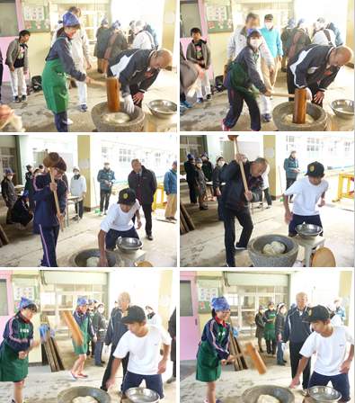 12月7日(土)に,地域のご高齢の方々との交流会「ふれあいもちつき」が行われ,本校からも参加しました。おもちつきを通して,地域の方々とのふれあいの輪を広げる楽しいひとときを過ごしました。