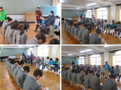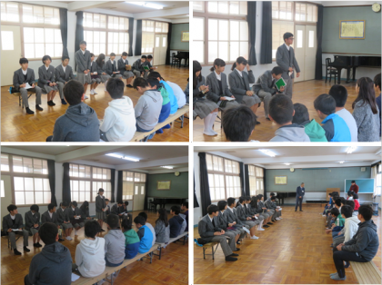 12月13日(木)に生徒会本部が大宅小学校を訪問し,大宅小学校の児童会との交流をしました。今回は児童会が取組を発表し,それを聞いた中学生が質問をしました。中学生の質問に小学生もしっかりと答えてくれていました。