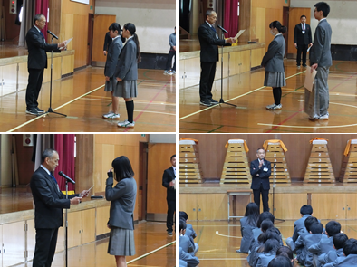 12月21日(金)に2学期の終業式が行われました。最初に校歌を全校で歌い,伝達表彰が行われ,校長先生からのお話がありました。16日間の冬休みを有意義に過ごして,くれぐれも体調に気を付けて,休み明けに元気に登校してください。授業再開は1月7日(月)です。