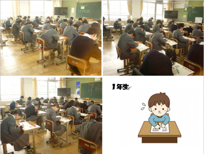 2月20日(水)に3学期学年末テストが始まりました。答案用紙に向かって真剣に取り組んでいました。金曜日までのテスト頑張ってください。
