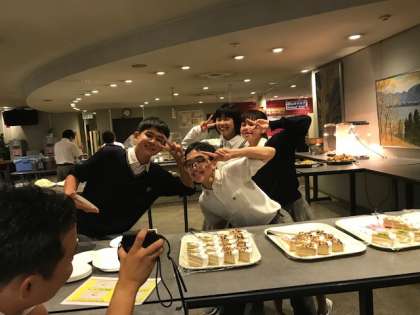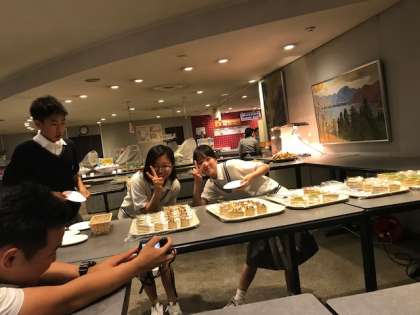 早稲田大学の食堂での夕食の様子です。デザートタイム!