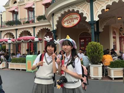 ディズニーランドで楽しく過ごしています。