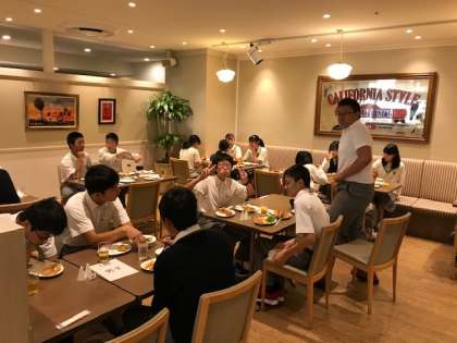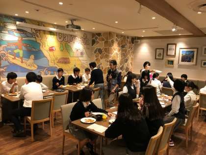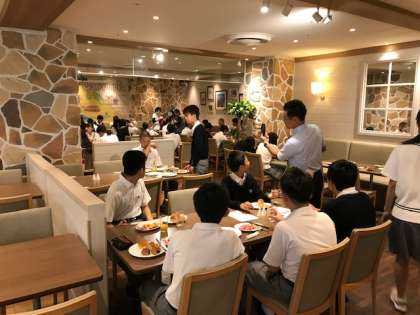 修学旅行3日目の朝食の様子です。全員元気に食べています。