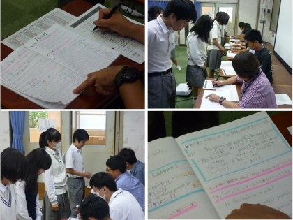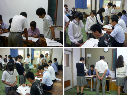 7月2日(火)に、3年生のノート検定が行われました。第1回は英語のノートを学年の先生に点検してもらい,それぞれ級の認定をもらいます。待っている生徒は各自で課題に取り組むのですが,学年全体がしっとりとした雰囲気で前向きに参加していました