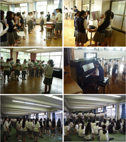 夏休み明けからすぐに,各クラス・各学年で合唱コンクールへの取り組みがスタートしています。リーダーが楽譜をチェックしたり,パートごとに練習をしたり,工夫をしながらハーモニーづくりに一生懸命に取り組んでいます。