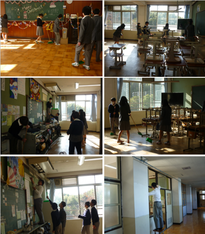 12月25日(水)3限に,全校で大掃除を行いました。教室以外にも普段掃除できない場所,学校の周りの道路などを分担してきれいにしてくれました。任された場所を丁寧に一生懸命掃除してくれていました。