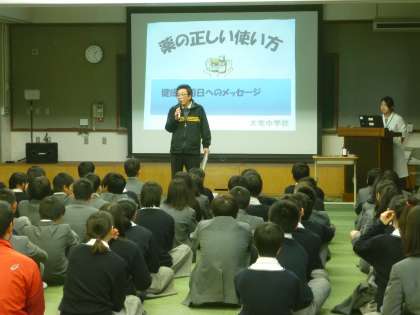 1月28日(火)の5限に2年生が薬物乱用防止教室を行いました。学校薬剤師の先生を講師に招いて,薬についての基礎的なお話や,薬の使用法,使い方を間違うと起こる危険等,詳しく学びました。