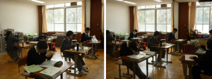 昨日は入学式で,2・3年生は生徒会本部役員の生徒以外は休みでしたが,今日は再び生徒たちの元気な姿が見られました。今日は,春休み期間中の宿題の内容についてのテストの時間もありました。一生懸命テストに取り組んでいる生徒が多かったです!皆さん,力をしっかり発揮できましたか?
