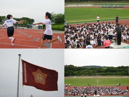 競技の運営では、放送部や評議委員、体育委員がいろいろな仕事をこなしていました。それぞれの競技の上位入賞者や、リレーのアンカーなどが表彰台に上り、学校長から賞状を受け取りました。