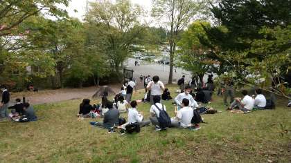 ここで昼食をとりました。緑に囲まれた広い場所で食べるご飯はいつもと違う味だったでしょうか?皆、美味しそうに食べていました。