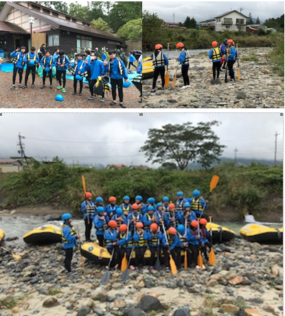 これからラフティングを行います。ドキドキハラハラの瞬間です。みんな頑張ってください。