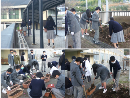 12月3日(木)美化保健委員会が花の植え替えをしてくれました。学校が美しくなっていくために頑張ってくれました。ありがとうございます。