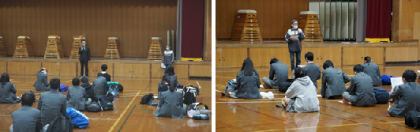 明日,2月16日(火)から京都府公立高校入学者選抜の前期選抜が行われます。本日の6時間目は体育館に受験する生徒が集まり,前日指導を行いました。