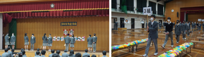 3月10日(水)の3・4時間目に行われた,「3年生を送る会」の様子です。例年は,体育館に全校生徒が集まって実施されますが,今年度は感染症対策として,1・2年生は各教室からZoomを通して鑑賞する形になりました。