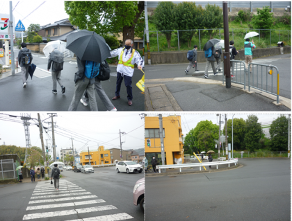 4月16日(金)今年度初の交通安全指導日でした。今回は教職員だけで行いました。雨の降る中でしたが,生徒の皆さんが元気に登校する姿が見れて良かったです。車の交通量の多いところです。車には十分に気をつけて,マナー良く登校をしましょう。