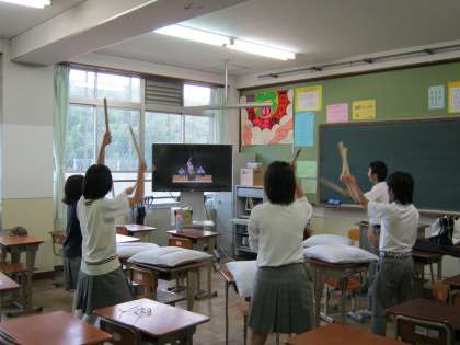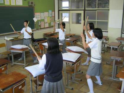 生徒会本部のメンバーが太鼓の練習を初めています。本校では今までに岩屋太鼓を習って練習し、文化祭や新入生歓迎会だけでなく、地域の祭などでも披露してきました。今年の文化祭では新しい演目に挑戦しています。文化祭では各委員会の発表や展示があり、準備が大変そうですが、太鼓の練習も熱心に取り組んでいます。文化祭当日はオープニングとして太鼓が披露されます。
