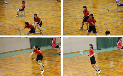 バドミントン部の全市大会 団体戦の様子です。声を掛けあいながら,集中して試合に臨んでいました。