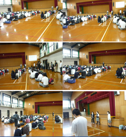 10月14日(木)修学旅行初日です。晴天で少し涼しい気温の中,結団式が体育館で行われました。少し緊張の中,修学旅行の最初の取り組みが始まりました。