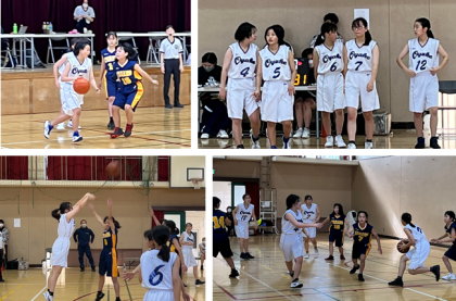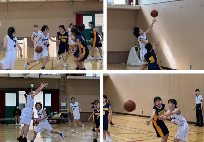 女子バスケットボール部の交流戦の様子です。よく声を出し,力を合わせて頑張っていました。