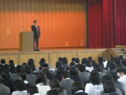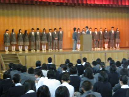 本日生徒会の評議員と各種委員の認証式が行われました。本部役員の認証が行われた後、3年4組の委員が全クラスの委員を代表して、各委員長に認証されました。その後学校長より大宅中学校を牽引してよりよくしていってほしいとメッセージが伝えられました。