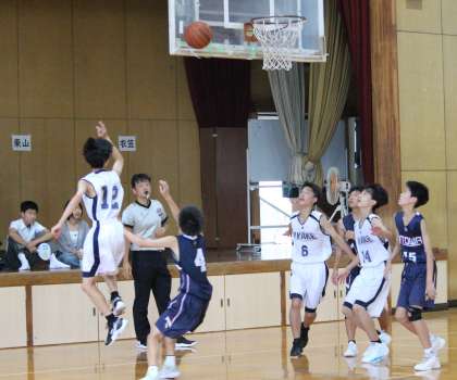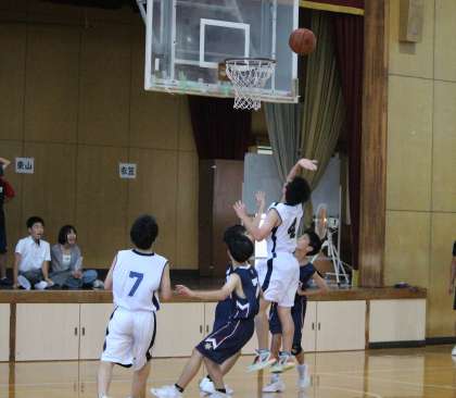 7月17日音羽中学校との対戦でした。終盤まで競ったゲーム展開で、シュートが成功する毎の歓声は凄いものがありました。最後まで必死でプレイする姿は見事でした。勝利の笑顔を、次回戦にも見せてください。ナイス勝利でした。