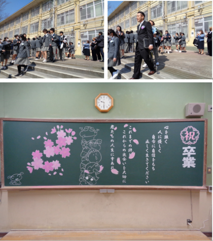 式では、担任からの最後の呼名に堂々と返事をして学校長から卒業証書を受け取ることができました。終始、厳粛な雰囲気の中、3年間の学びと思い出を振り返ることのできる感動の卒業式でした。