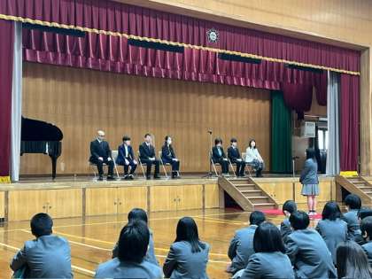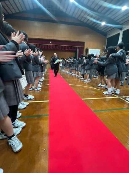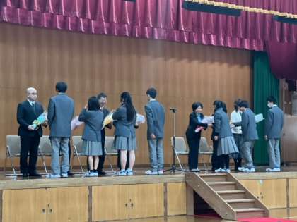 各先生からのお話のあと、生徒代表のお別れのことばがありました。出席した生徒たちも静かにきちんと話を聞き、別れを惜しんでいました。9名の教職員の方々、これからもお体に気を付けてご活躍ください。