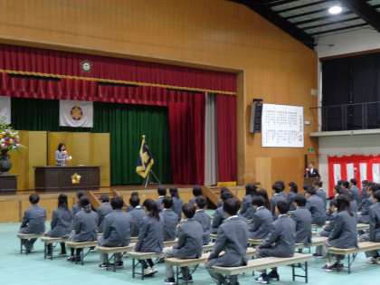 学校長からは新しくなった学校目標「ともに学び,逞しく成長」が示され、新入生代表の「誓いの言葉」もとても立派な発表でした。式の最後は新担任の引率での退場となり,緊張した面持ちで式に臨んでいた新入生も、式が終わって教室に入ると少しホッとした様子でした。