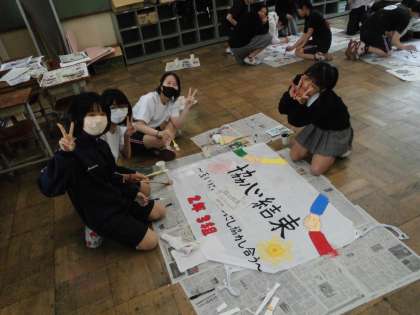 懇談の時間を活用し、2年生も学級旗づくりを進めています。力作ぞろいで完成が待ち遠しいですね。