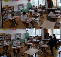 本日と明日の2日間、1学期の中間テストが行われています。5組では、はじめに学習の時間がありしっかりと復習をして、意欲的に取り組んでいました。写真は3時間目の英語のテストの様子です。