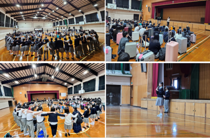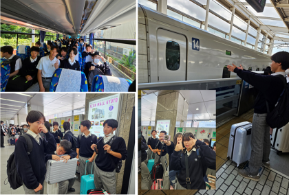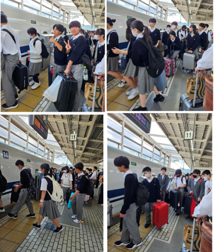 結団式、バス、新幹線の様子です。